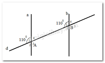 Vì đường thẳng d cắt 2 đường thẳng a và b tạo thành cặp góc A1 và B1 bằng nhau ( cùng bằng 110\(^\circ \)) nên: