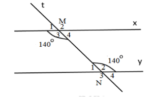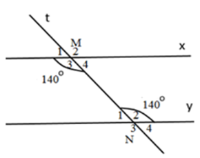 Suy ra \( \widehat {{N_1}} = {180^0} - \widehat {{N_2}} = {180^0} - {140^0} = {40^0}\)