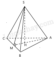 Ta có: \(SA = SB = SC \Rightarrow \Delta SAB\)đều\( \Rightarrow \) SM vừa là trung tuyến vừa là đường cao.\( \Rightarrow SM \bot BC \Rightarrow \widehat {SMB} = {90^0} \Rightarrow \Delta SMB\) vuông tại M