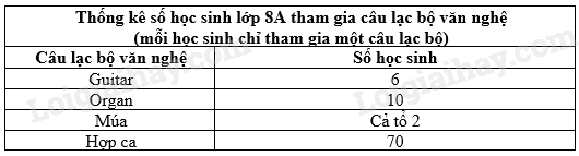 Bảng thống kê sau cho biết dữ liệu về hoạt động trong giờ ra chơi của học sinh lớp 8A1 (mỗi học sinh chỉ thực hiện một hoạt động)