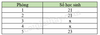 : Để đảm bảo kì thi cuối HKI lớp 8 một cách khách quan nhà trường chia phòng. Khối 8 có 105 học sinh được chia thành 5 phòng. Bảng thống kê số học sinh ở mỗi phòng như sau: