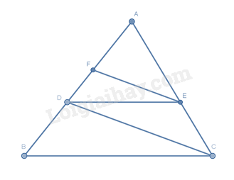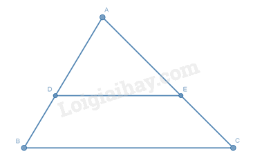 \(\frac{{AD}}{{AB}} = \frac{{AE}}{{AC}}\) suy ra \(DE // BC\)