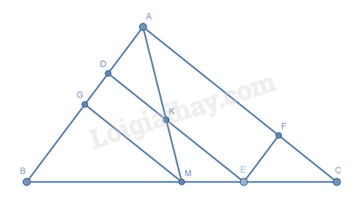Tương tự với tam giác \(AGM\) và tam giác \(ABC\) có \(\frac{{DK}}{{AD}} = \frac{{MG}}{{AG}} = \frac{{MG}}{{BG}} = \frac{{AC}}{{AB}}\) (3)