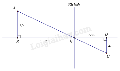Ta có: \(AB // CD\) (cùng vuông góc với \(BD\) ) \( \Rightarrow \frac{{EB}}{{ED}} = \frac{{AB}}{{CD}}\) (hệ quả định lí Thalès)