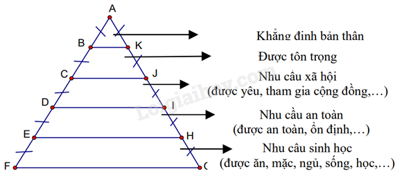 Ta có: \(AG = GH = HI = IB = \frac{{AB}}{4};\,AF = FE = ED = DC = \frac{{AC}}{4}\)