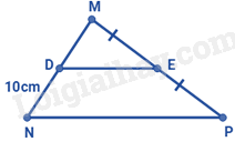 Cho hình vẽ dưới đây: Biết ME = EP, DN = 10cm; và DE // NP. Khi đó độ dài đoạn thẳng DM là