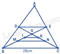 \( \Rightarrow MN = \frac{{BC}}{2} = \frac{1}{2}.28 = 14cm\)