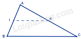 Cho ΔABC, I, K lần lượt là trung điểm của AB và AC. Biết BC = 8 cm, AC = 7cm. Ta có: