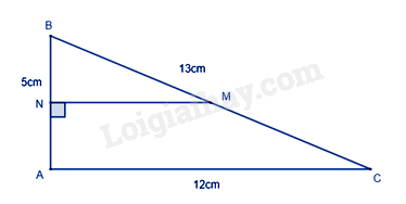 Cho tam giác ABC có AB = 5cm, AC = 12cm và BC = 13cm. Gọi M là trung điểm của BC. Từ M kẻ đường thẳng vuông góc với AB cắt AB tại N. Tính MN?