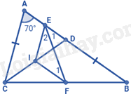Nên \(\widehat {IE{\rm{D}}} = \widehat A = {70^o}\) (đồng vị) và \(EI = \frac{{AC}}{2}\)