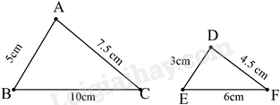 Cho hai tam giác ABC và DEF có kích thước như trong hình, hai tam giác có đồng dạng với nhau không, nếu có thì tỉ số đồng dạng là bao nhiêu?
