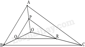 Cho tam giác ABC và một điểm O nằm trong tam giác đó. Gọi P, Q, R lần lượt là trung điểm của các đoạn thẳng OA, OB, OC. Cho biết tam giác ABC có chu vi bằng 450cm, chu vi tam giác PQR có độ dài là