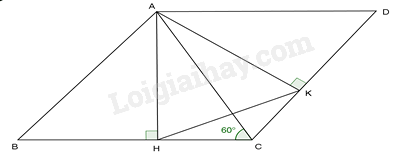 Ta lại có AB//CD (vì ABCD là hình bình hành) mà \(AK \bot DC \Leftrightarrow AK \bot AB \Rightarrow \widehat {BAK} = {90^0}\)