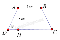Ta có tam giác AHD vuông cân tại H vì \(\widehat D = {45^o}\) . Do đó DH = AH = 5 cm