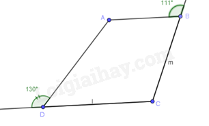 Hình thang ABCD có AB // CD nên \(\widehat A = \widehat {A{{D}}E} = {130^o};\widehat C = \widehat {ABF} = {111^o}\)