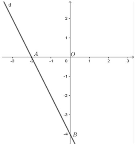 A là giao điểm của d với trục hoành nên \(0 = - 2x - 4,x = - 2\) nên \(A\left( { - 2;0} \right)\)