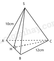 Xét tam giác vuông SHA có: \(SH = \sqrt {S{A^2} - H{A^2}} = \sqrt {{{10}^2} - {6^2}} = 8cm\)