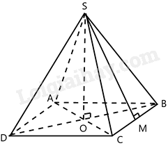 \({V_{SABCD}} = \frac{1}{3}.{S_{ABCD}}.SO = \frac{1}{3}.{a^2}.\frac{{a\sqrt 2 }}{2} = \frac{1}{3}.{a^2}.\frac{{a\sqrt 2 }}{2} = \frac{{{a^3}\sqrt 2 }}{6}\)