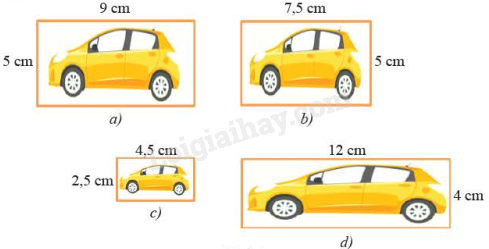 Vì \(\frac{{4,5}}{3} \ne \frac{{3,9}}{2}\) nên hai hình b và c không đồng dạng với nhau