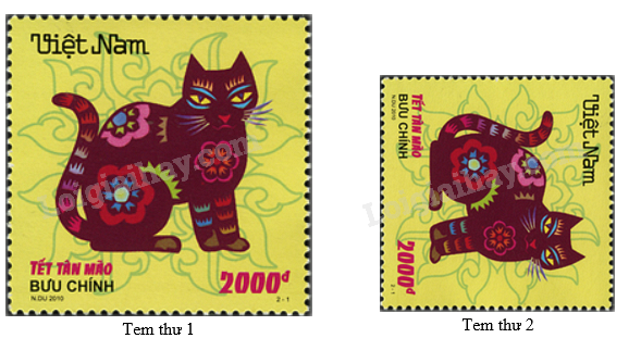 Độ dài cạnh của tem thư 2 là: \(40:4 = 10\left( {cm} \right)\)