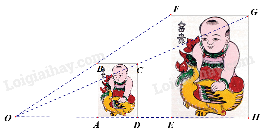 Do đó, bức tranh A’B’C’D’ là hình đồng dạng phối cảnh của bức tranh ABCD, tâm đồng dạng phối cảnh là điểm O, tỉ số 2