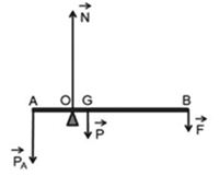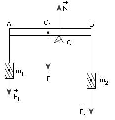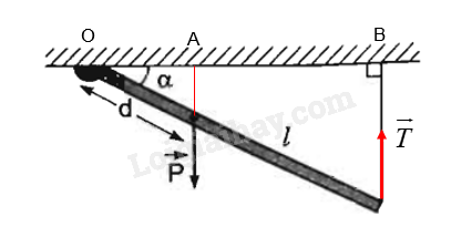 Vì thanh \(AB\) có thể quay xung quanh trục đi qua \(O\) nên muốn cho thanh \(AB\) nằm cân bằng ta áp dụng quy tắc mômen đối với trục quay \(O\) ( và lưu ý rằng momen của \(\overrightarrow N \) đối với \(O\) bằng không):