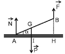 \(\begin{array}{l}P.\frac{{AB}}{2}{\rm{cos}}\alpha {\rm{ = T}}{\rm{.AB}}{\rm{.}}\sin \alpha \\ \to T = 0,5P.cot\alpha \end{array}\)