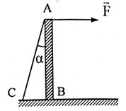 Một thanh nhẹ gắn vào sàn tại B như hình vẽ. Tác dụng lên đầu A lực kéo F = 100N theo phương ngang. Thanh được giữ cân bằng nhờ dây AC. Lực căng của dây có giá trị là bao nhiêu? Biết \(\alpha = {30^0}\)