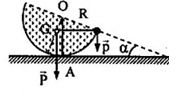 \(\begin{array}{l}P.OG.\sin \alpha = p.R.c{\rm{os}}\alpha \\ \leftrightarrow Mg.\frac{{3R}}{8}\sin \alpha = mgRc{\rm{os}}\alpha \\ \to {\rm{M}}\frac{{3}}{8}\sin \alpha = mc{\rm{os}}\alpha \\ \to {\rm{tan}}\alpha {\rm{ = }}\frac{{8m}}{{3M}} = \frac{{8.7,5}}{{3.100}} = 0,2\\ \to \alpha = 11,{31^0}\end{array}\)