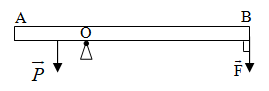 \(\begin{array}{l}{F_1}.AO = {F_2}.BO\\ \to {F_2} = \frac{{{F_1}.AO}}{{BO}} = \frac{{4.0,8}}{{0,2}} = 16N\end{array}\)