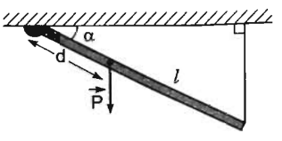 Một thanh đồng chất có trọng lượng P được gắn vào tường nhờ một bản lề và được giữ nằm ngang bằng một dây treo thẳng đứng. Xét momen lực đối với bản lề. Hãy chọn đáp án đúng?
