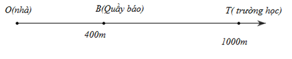 Bạn Việt đi xe đạp đến trường theo đường thẳng như hình vẽ. Khi đến quán báo, bạn sực nhớ đã quên một cuốn sách ở nhà nên quay về nhà lấy sách rồi lại đạp xe đến trường.