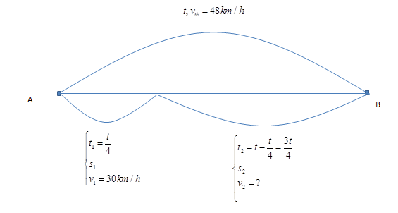 \( \Rightarrow \) v.t = \({v_1}.\dfrac{t}{2} + {v_2}.\dfrac{t}{2}\)\( \Rightarrow v = \dfrac{{{v_1} + {v_2}}}{2}\)