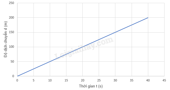 Vậy phương trình đồ thị độ dịch chuyển – thời gian là: d = 5t (m).