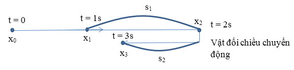 \(s = {s_1} + {s_2} = \left| {{x_2} - {x_1}} \right| + \left| {{x_3} - {x_2}} \right| = \left| {4 - 3} \right| + \left| {3 - 4} \right| = 2m\)