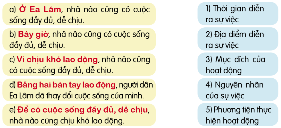 Bộ phận in đậm trong mỗi câu sau bổ sung cho câu những thông tin gì? Tìm ý đúng. Mỗi bộ phận trên trả lời cho câu hỏi nào. Tìm trạng ngữ trong các câu sau. Đặt một câu nói về hoạt động đền ơn đáp nghĩa hoặc hoạt động kỉ niệm Ngày thành lập Quân đội nhân dân Việt Nam ở trường em, trong câu có trạng ngữ.