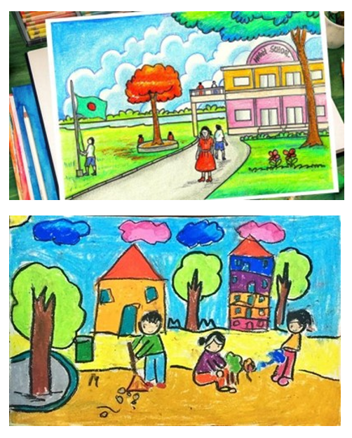 Hãy vẽ một bức tranh để tuyên truyền phong trào Trường em xanh, sạch, đẹp.