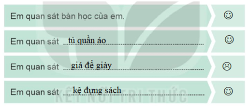 Quan sát chỗ học, chỗ chơi và nơi để đồ cá nhân của em trong nhà