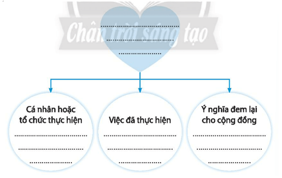 2. Hoàn thành sơ đồ tư duy về một hoạt động tình nguyện, nhân đạo ở địa phương em theo hướng dẫn: