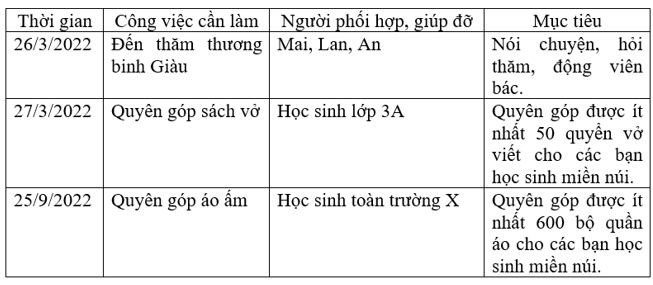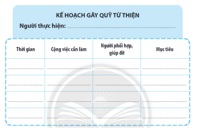 Trình bày kế hoạch gây quỹ hoạt động tình nguyện, nhân đạo của em vào mẫu sau: