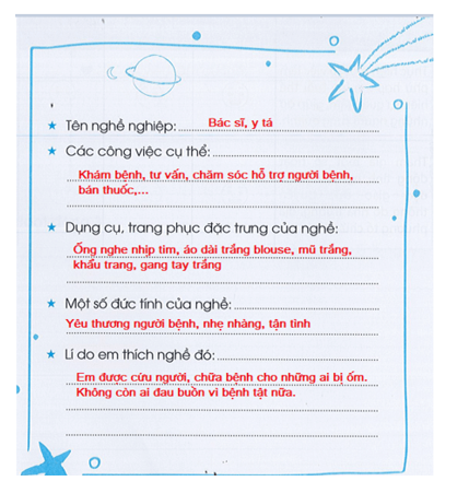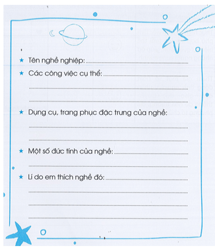 Viết các thông tin về nghề em yêu thích vào phiếu dưới đây: