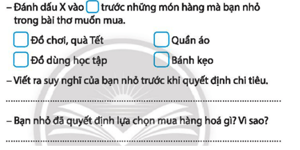 - Bạn nhỏ đã quyết định lựa chọn mua hàng hóa gì ? Vì sao ?