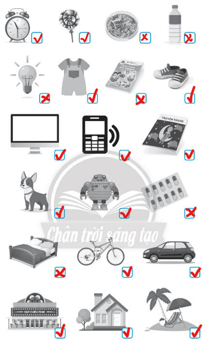 Đánh dấu √ vào ô trống cạnh những thứ là mong muốn của em.