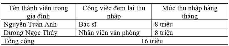 Bảng tìm hiểu mức thu nhập hằng tháng của các thành viên trong gia đình: Nguyễn Ngọc Anh