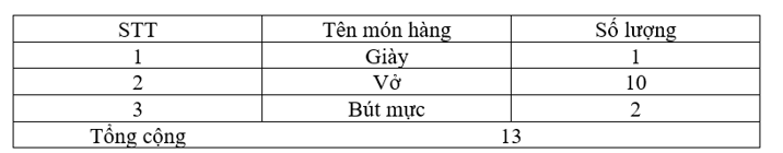 1. Em hãy lập danh sách những món hàng cần mua để đón năm mới.