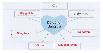 Viết tên những đồ dùng, dụng cụ được sử dụng để trang trí lớp học của em.