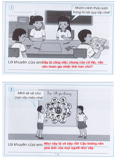 Viết vào chỗ … lời khuyên của em dành cho bạn nam trong mỗi tình huống sau: