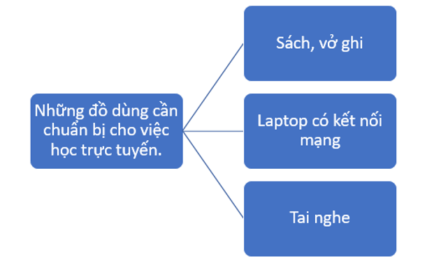 Tìm hiểu và vẽ sơ đồ tư duy những đồ dùng cần chuẩn bị cho việc học trực tuyến.