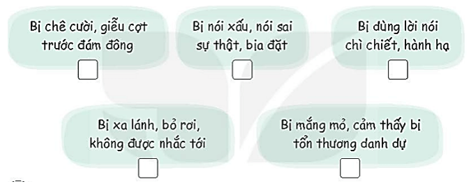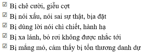Em đã từng nghe hoặc chứng kiến những hành vi gây tổn thương tinh thần nào sau đây: