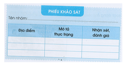Khảo sát thực trạng môi trường quanh em và hoàn thành phiếu sau: